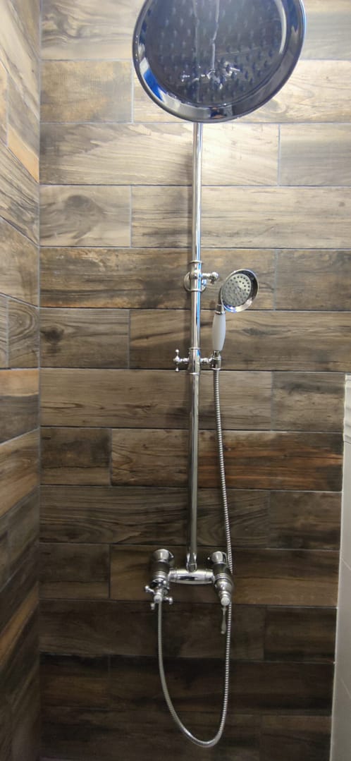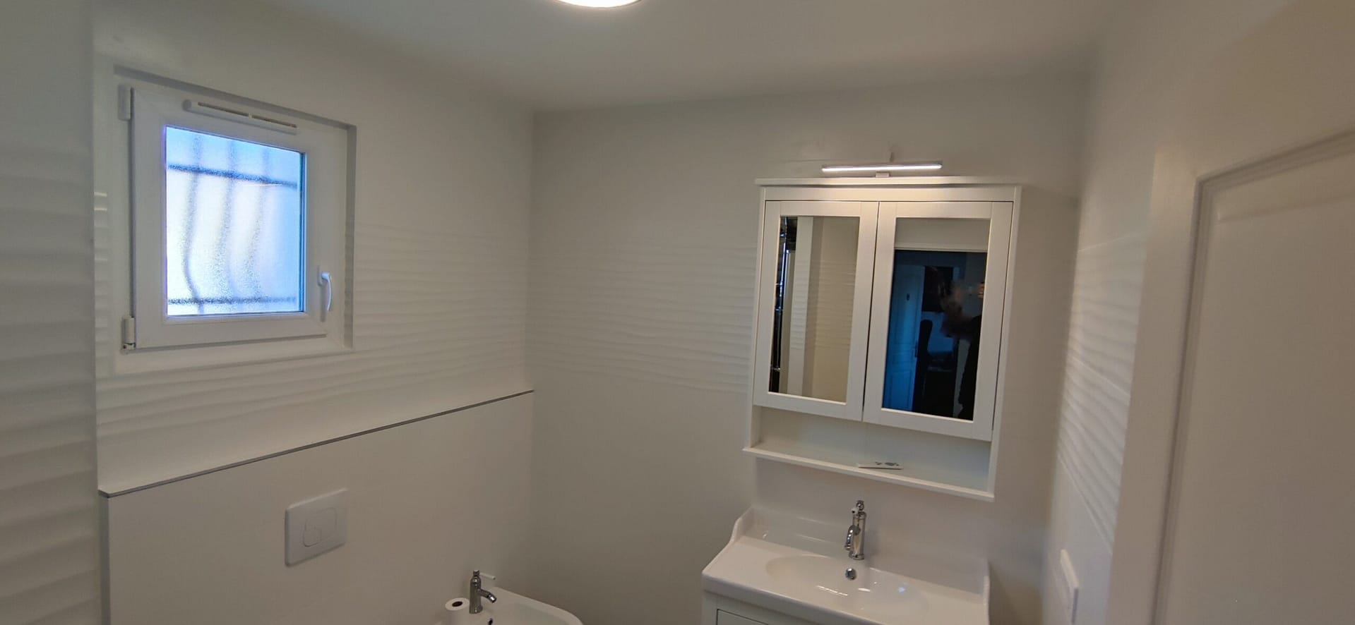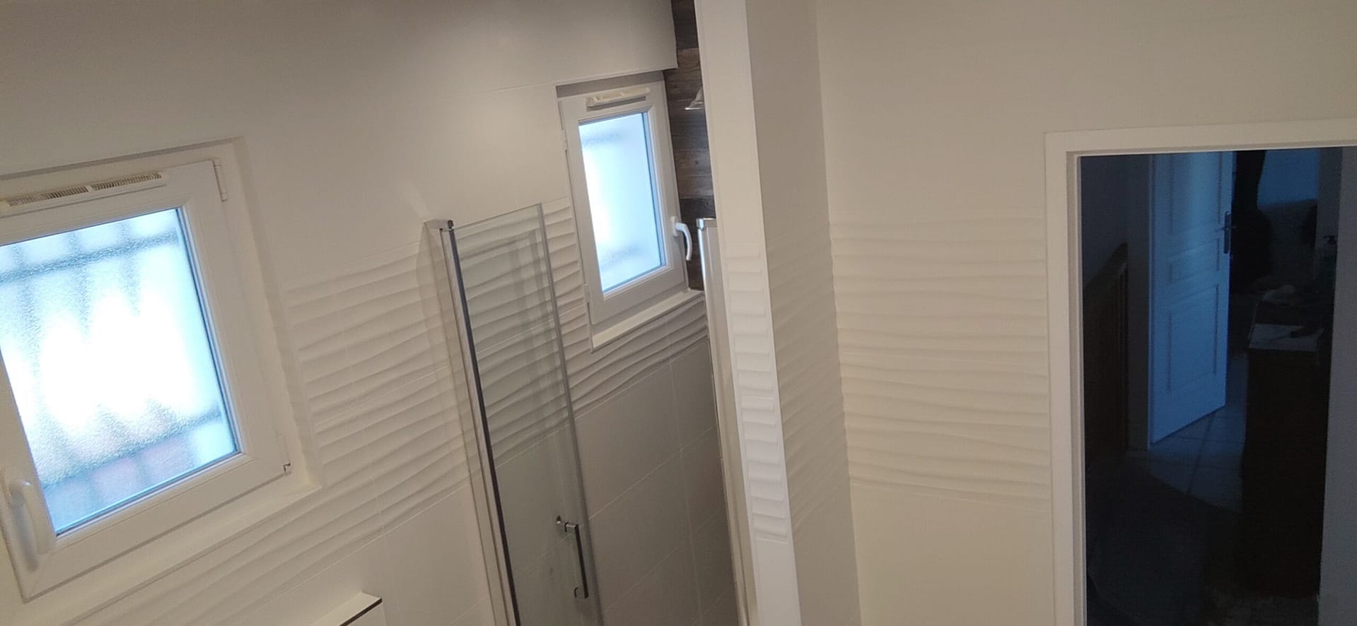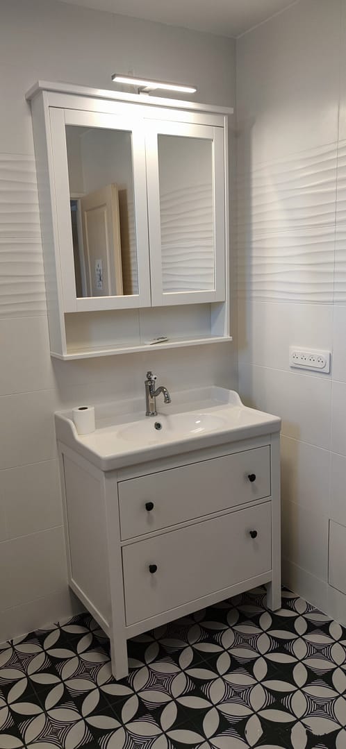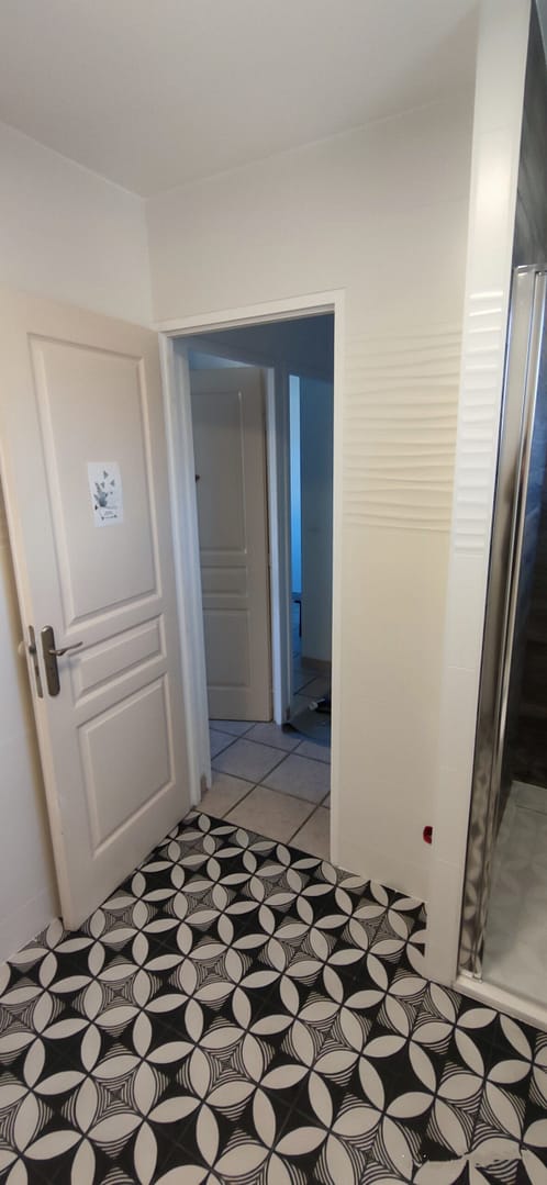 Vous pouvez comparer le résultat des travaux en glissant le curseur central. A droite se trouve une photo de la salle de bain avant et a gauche une photo après la rénovation